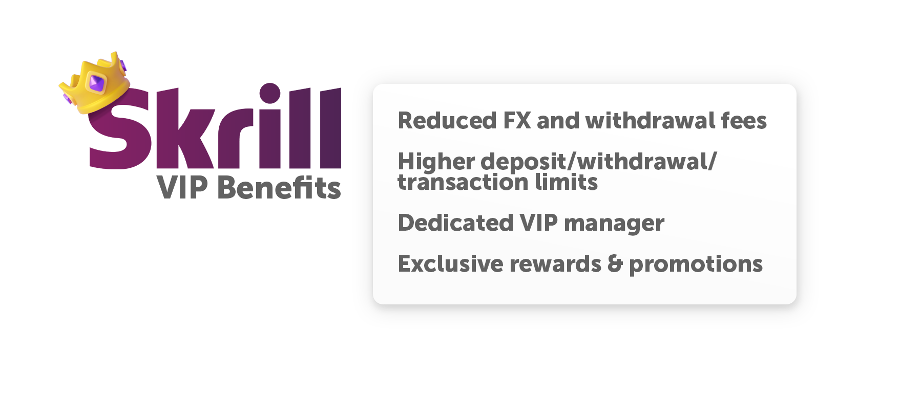 - Fast transfers within the Skrill ecosystem.